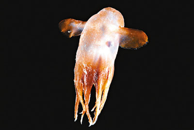 中新網11月24日電 由80個國家、逾2000名科學家進行為期10年的海洋普查接近尾聲,科學家至今在深海已找到近1.8萬種海洋生物,其中包括一種章魚,長有如象耳般的一對鰭,專家為它取名“大寶”,即迪士尼卡通《小飛象》的主角。
