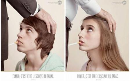 據(jù)英國(guó)《每日電訊報(bào)》24日?qǐng)?bào)道,法國(guó)近日一則禁煙廣告因涉嫌性暗示引起一片嘩然。該廣告有男女兩個(gè)版本,意在提醒人們:吸煙好比是成了煙草的奴隸,但該廣告圖中的男女青少年的動(dòng)作讓人聯(lián)想起口交,引起極大爭(zhēng)議。