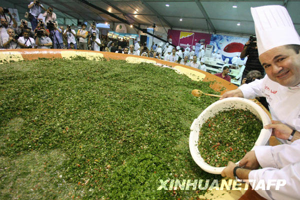 中新網(wǎng)10月27日電 黎巴嫩在組織政府方面問題多多,但在締造世界紀(jì)錄方面卻不落人后。前天,黎巴嫩廚師制作了一道重約3.175噸(3175公斤)的塔博勒沙拉(tabbouleh),創(chuàng)造了今年來的第三個(gè)吉尼斯世界紀(jì)錄。