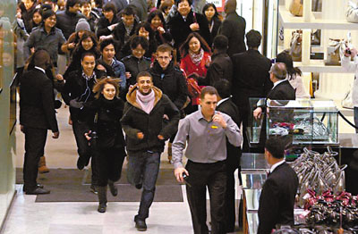 中新網12月28日電 前日是圣誕拆禮物日,英國倫敦城西名店早在網上事先張揚這天舉行瘋狂大減價,Gucci等名牌全部半價銷售,加上英國下周將征收17.5%的增值稅,50萬人前日出動掃平貨,有些早在清晨時分在名店外排隊等開門,期間出現插隊、推撞等混亂場面,要勞煩警員出動維持秩序。