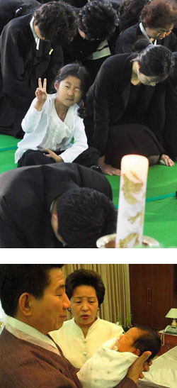 當(dāng)時(shí),盧武鉉的孫女盧緒恩(音)似乎并不知道爺爺去世,顯得天真無(wú)暇,這更使旁邊人悲痛萬(wàn)分。發(fā)喪時(shí),天真的小緒恩坐在權(quán)良淑女士旁邊向遺像做出“V”型手勢(shì)。