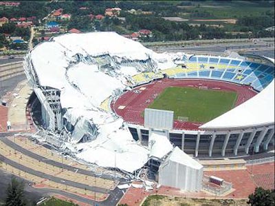 意外發(fā)生于當(dāng)?shù)貢r(shí)間2日上午9時(shí)30分左右發(fā)生,涉及坍塌的部分包括體育館的頂蓋前方及左右兩方,坍塌范圍約占全頂蓋建筑結(jié)構(gòu)的60%。現(xiàn)場(chǎng)所見,整個(gè)全長(zhǎng)134米橢圓形頂蓋,其中80米陷入墜毀的情況。