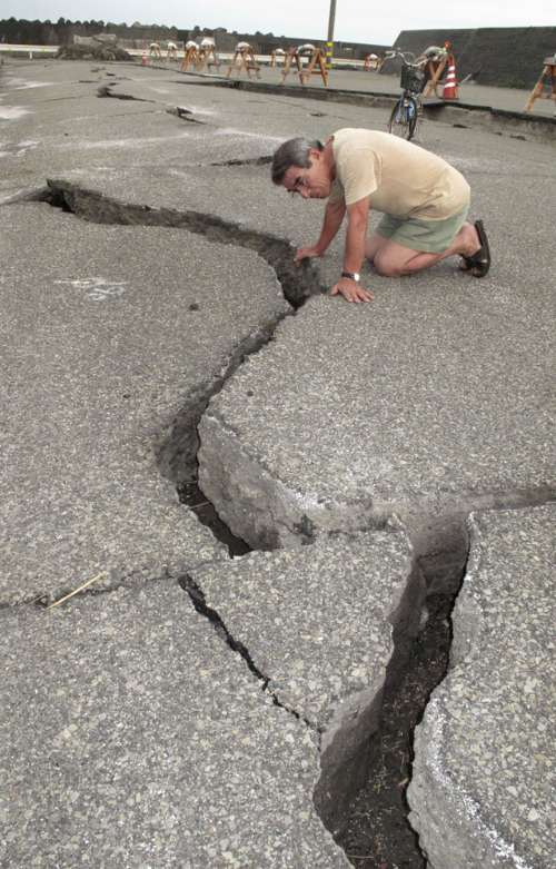 在燒津港的碼頭上,地震后出現(xiàn)了一條300米長(zhǎng)的裂痕。燒津港某漁業(yè)合作社的官員說(shuō):“這次地震和海嘯預(yù)警實(shí)在令人害怕。今天的事讓我們?yōu)檎嬲拇鬄?zāi)難進(jìn)行演習(xí)。”