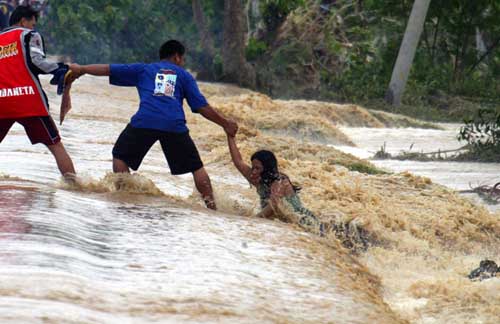 許多地區的洪水高達兩層樓高,被洪水困在屋頂的居民前天晚上就開始紛紛打電話到無線廣播電臺求救。這簡直就是兩星期前,臺風“凱薩娜”襲擊菲律賓時,大馬尼拉區所發生的情形的再版。“凱薩娜”引發的洪水使大馬尼拉區和附近省份頓成澤國,交通癱瘓超過12小時,并造成300多人喪生。