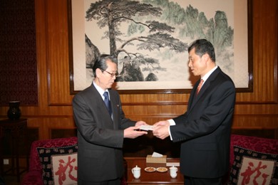 劉曉明大使首先請(qǐng)崔泰福轉(zhuǎn)交中共中央總書記胡錦濤致朝鮮勞動(dòng)黨總書記金正日的新年賀卡。崔泰福表示感謝,并允向金正日總書記轉(zhuǎn)交。