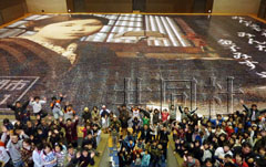 中新網1月9日電 據日本共同社報道,日本山口縣長門市的市民日前用12萬張笑容照片拼成了當地出身的童謠詩人金子美鈴的巨幅肖像(見圖)。肖像長42.82米、寬31.78米,是全球最大的拼畫。長門市8日舉行了吉尼斯世界紀錄的認證儀式。此前的最大拼畫由11.3萬張照片組成。