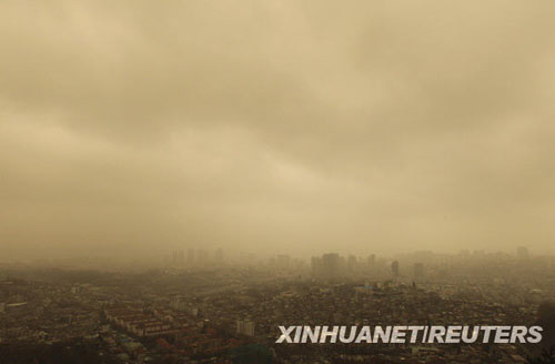 中新網3月22日電 據韓國《朝鮮日報》報道,上周末,韓國全境遭到史無前例的最厲害的“超級沙塵”襲擊。這場沙塵暴20日下午來襲,持續(xù)到21日凌晨,韓國全境被黃黃的沙塵吞沒。