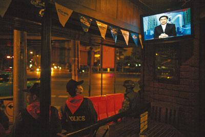 反政府紅衫軍指控阿披實,在軍方協助下非法奪權,3月中發起示威,要求解散國會和提前大選,其后占據首都曼谷商業區至今,造成巨大經濟損失,并與軍警多次發生暴力沖突,其中在4月10日“黑色星期六”的流血沖突,造成27人死亡,近1000人受傷。