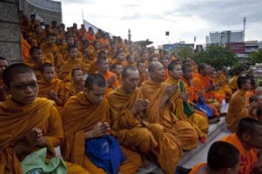 根據泰國最高僧伽會的規定,佛教徒被禁止參加投票和競選活動,并且他們也不能參加政治性集會。但泰國愈發失控的社會現狀讓僧侶們也難以置身事外。