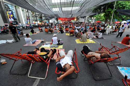 中新網5月18日電 綜合外電報道,泰國反政府紅衫軍一名領導人17日向總理阿披實的一名高級助手打電話建議雙方“休戰”。