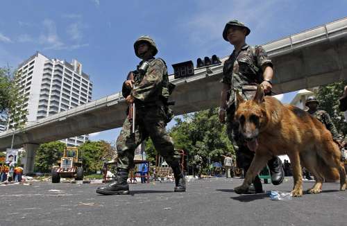 由于軍方早前在四季酒店內曾經發現爆炸品,軍隊帶同犬只搜索紅衫軍有沒有留下危險物品。泰國軍方表示,恢復曼谷市面秩序的行動于下午4時結束,之后清掃街道等工作將移交給曼谷市當局。此外,軍隊和民眾21日早上開始對除拉差巴頌地區以外的紅衫軍集會地區的街道進行清掃,拆除路障。