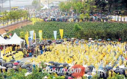 據報道,當天,在舉行盧武鉉逝世一周年追悼儀式的峰下村,大雨如注,然而前來追悼的客人仍然絡繹不絕。