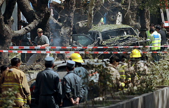 據報道,爆炸發(fā)生地附近有多國部隊駐扎。事發(fā)于早上8時許,一名自殺式襲擊者駕駛滿載炸藥的汽車,在北約駐阿富汗國際安全援助部隊(ISAF)總部門外引爆炸彈。爆炸導致大樓玻璃粉碎,附近多輛汽車損毀,地上血漬斑斑。