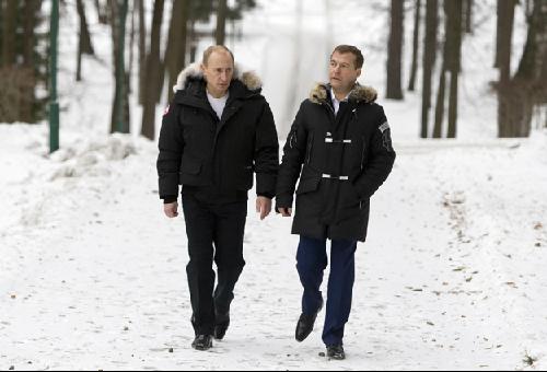 梅德韋杰夫和普京一度被外界認(rèn)為不合,而且兩人均已表示不排除參加2012年總統(tǒng)大選。但最近一段時(shí)間以來,兩人作出一些看似刻意的“親密”舉動(dòng),試圖化解外界的不合傳言。比如,8月12日,普京和梅德韋杰夫在黑海索契度假時(shí)一起逛夜市。當(dāng)天,兩人還在一家酒吧看俄羅斯對阿根廷足球比賽。