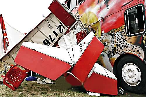 事發于首爾西面的仁川,當時正舉行“2009仁川世界城市慶典”。活動公關表示,該架飛機當時正為另一個活動飛行,突然撞落慶典上一架展覽中的巴士。警方稱,天上布滿裝飾風箏可能是令飛機墜毀的原因。機上兩名機師隨即送院,其中一人不治,另一人輕傷。