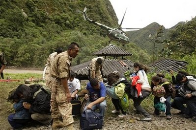 據悉秘魯當局出動了6架直升機,美國方面也派出6架直升機前往洪水泛濫的馬丘比丘遺址幫助救援。對于有人士質疑美國派出直升機前往秘魯的動機,美國駐秘魯大使麥克金利(Michael McKinley)強調說,此次救援行動美國只是擔任救助游客的角色,而不是前往干涉或占領。