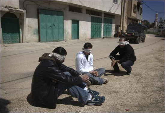 這兩名士兵都隸屬于獅崽步兵突擊旅。他們稱,自己曾目擊了3月26日,數(shù)百名以軍士兵在一個名為哈里斯的小村子中的搜索行動。士兵甲說,大約150名巴勒斯坦人,最小的只有14歲,被以軍士兵捆綁起來,戴上眼罩,然后關(guān)押在村子的學(xué)校中,從上午三點一直到下午三點。他說,以軍士兵這樣做是為了防止村子中的年輕人向附近的公路扔石頭。顯然,被拘押的大多數(shù)人都沒有反抗行為,以軍士兵只是為了收集更多情報。