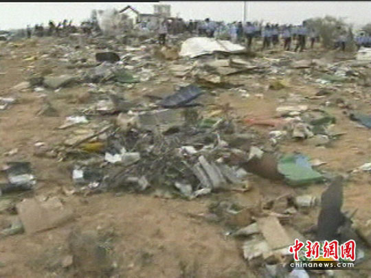 利比亞電視臺播放的新聞畫面顯示,客機失事后,現場遍地殘骸一片狼藉。