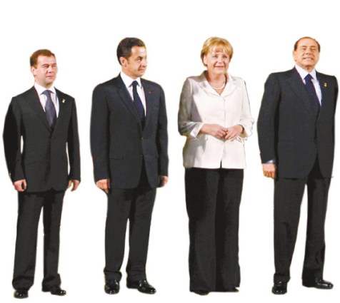 本屆峰會東道主日本首相福田康夫身高剛好是1.68米,法國總統(tǒng)薩科奇則只有1.65米。德國女總理默克爾與法國總統(tǒng)薩科齊一樣高,身高1.65米。