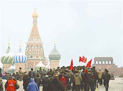 1月21日,在俄羅斯首都莫斯科,數(shù)百名俄共黨員及普通民眾排隊(duì)向紅場邊的列寧墓獻(xiàn)花圈。當(dāng)日,數(shù)百名俄共黨員及普通民眾舉行活動(dòng),紀(jì)念列寧逝世85周年。