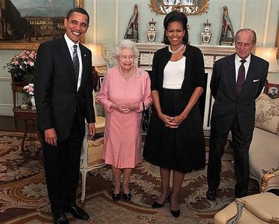 中新網4月2日電 美聯社消息,在倫敦參加20國集團峰會(G20)的美國總統(tǒng)奧巴馬夫婦當地時間1日與英國女王伊麗莎白二世及王夫菲利浦親王舉行會晤。