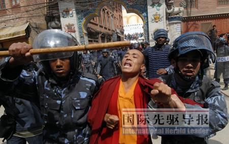 次仁們算是幸運的。《國際先驅(qū)導(dǎo)報》記者在現(xiàn)場看到,被煽動沖在前面和尼泊爾警方對峙、沖突的多是青少年,而那些“藏獨”骨干則在現(xiàn)場附近拿著手機指揮、清點人頭。