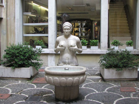 前些天,圓明園兩個青銅獸首的拍賣引起軒然大波,然而很多人不知道,獸首的原作者意大利人郎世寧,卻是精于女性裸體噴泉設(shè)計的人。像這樣充分展現(xiàn)人體的情趣噴泉,在人口非常稠密的商業(yè)區(qū)也能見到。因?yàn)樵?jīng)有過那樣一個黑暗的對人性壓抑的中世紀(jì),于是文藝復(fù)興以來,歐洲人對于身體的贊美和歌頌,處處都散發(fā)著返璞歸真的氣息。在人體藝術(shù)方面,歐洲人似乎很少去追究色情和藝術(shù)的差別,或許在他們眼里,只要能夠使城市變得更加具有情趣的東西,就一定是美和藝術(shù)的吧。(張樾 )