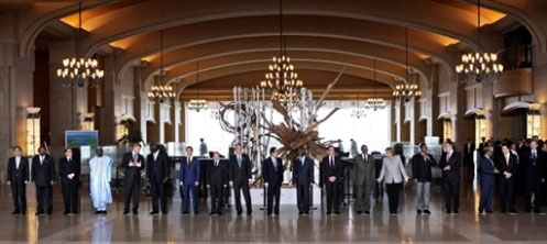 7月7日,出席八國集團首腦與非洲國家領導人對話會議的有關國家領導人在一起。