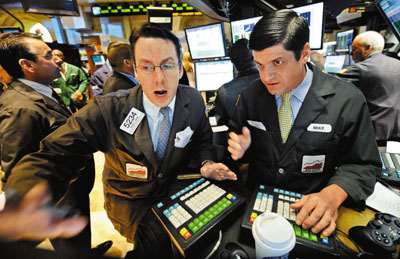 華爾街股市波動(dòng),交易員極緊張,美國政府將動(dòng)用巨額納稅人金錢救市。