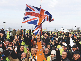 英國東部林肯郡一座煉油廠上月發生反外勞罷工,后來波及20處其它油氣設施,最后廠方同意198個職位中的一半聘用英國勞工,騷亂才結束,這次罷工為歐洲企業主敲起警鐘,暗示將來會有更多激烈糾紛。