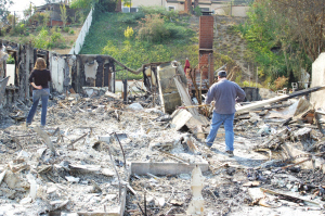 圣地牙哥紅十字會的發言人福肯壽(Gayle Falkenthal)也是受害者之一。她駕著她的1991年豐田轎車從斯克瑞普斯農莊的家中逃出來,車上裝滿了貴重的個人物品。她在圣地牙哥的一位朋友家借住一宿,早晨醒來卻發現她停在外面的車已被洗劫一空。
