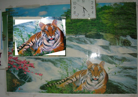 前晚9時,網友“攀枝花xydz”在“打虎派”大本營色影無忌華南虎臨時論壇發帖說,“周老虎”的原形是一副老虎年畫,除耳朵不一樣外,哪里都一樣,甚至連老虎紋路都是一樣。各路高手將年畫老虎與“周老虎”進行比對,得出是同一只老虎的結論。