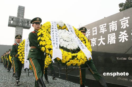 12月13日上午,南京市8000多名各界群眾代表,駐寧部隊(duì)代表,以及專程來寧的外國友好人士,在侵華日軍南京大屠殺遇難同胞紀(jì)念館集會廣場隆重舉行“悼念侵華日軍南京大屠殺30萬同胞遇難70周年暨侵華日軍南京大屠殺遇難同胞紀(jì)念館擴(kuò)建工程竣工儀式”。中新社發(fā) 韓華 攝