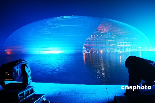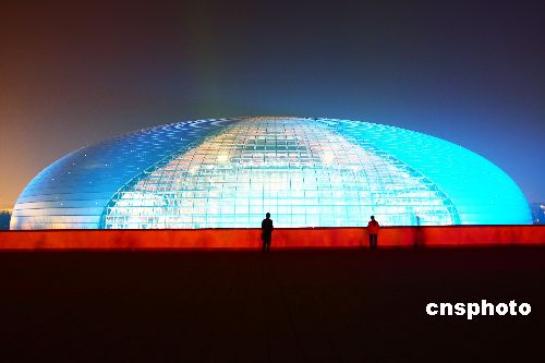 12月20日,中國國家大劇院周身,被布置完畢的燈光照射出了變化多端的顏色。隨著國家大劇院首個演出季開幕盛典的臨近,營造燈光效果的設(shè)施基本就位。據(jù)悉,本次開幕國際演出季將從2007年12月22日持續(xù)到2008年4月6日,期間將有78個劇目、180場精彩演出在這里隆重上演,其中三分之一為國外劇目,涵蓋了歌劇、舞劇、音樂會、話劇、民族戲曲五大藝術(shù)門類,預(yù)計接納觀眾30萬人次。中新社發(fā) 鄭雄增 攝