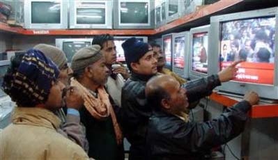 圖文:人們觀看貝·布托遇刺事件的最新進展