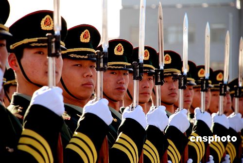 1月3日,中國(guó)人民解放軍三軍儀仗隊(duì)官兵在北京軍營(yíng)內(nèi)進(jìn)行隊(duì)列訓(xùn)練。中國(guó)人民解放軍三軍儀仗隊(duì)主要擔(dān)負(fù)迎送外國(guó)國(guó)家元首、政府首腦、軍隊(duì)高級(jí)將領(lǐng)來訪、外國(guó)領(lǐng)導(dǎo)人向人民英雄紀(jì)念碑敬獻(xiàn)花圈時(shí)的禮兵、國(guó)慶閱兵、大型軍事演習(xí)、重要會(huì)議的標(biāo)兵和首都一些重要目標(biāo)和敏感地區(qū)的維穩(wěn)應(yīng)急任務(wù)。 中新社發(fā) 楊慧峰 攝
