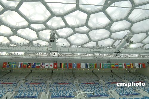 1月28日,位于北京市北四環(huán)的北京奧運(yùn)會(huì)標(biāo)志性場館、北京的新地標(biāo)之一——國家游泳中心(“水立方”)竣工并交付使用。經(jīng)過參建各方4年多的努力,國家游泳中心完成了奧運(yùn)建設(shè)工作,夢幻般的水藍(lán)色建筑即將投入“好運(yùn)北京”賽事使用。國家游泳中心在國內(nèi)首次采用ETFE氣枕結(jié)構(gòu),是世界上建筑面積最大、功能要求最復(fù)雜的膜結(jié)構(gòu)系統(tǒng)。中新社發(fā) 徐曦弋 攝