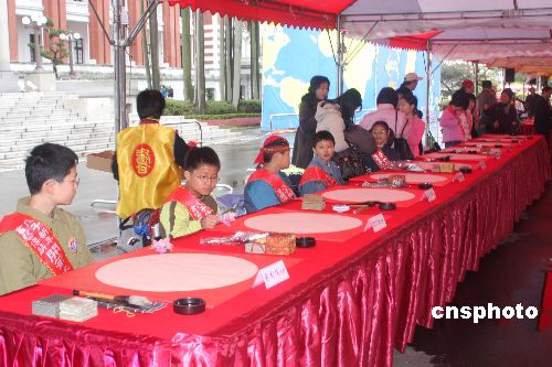 圖為最近一年內在臺灣書法比賽中獲獎的十位中小學生應邀在開筆大會上揮毫。