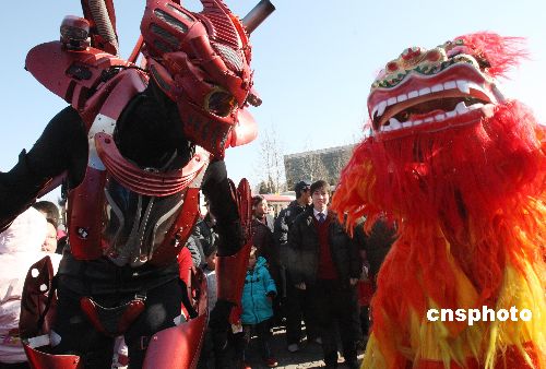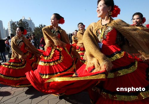 2月9日,在北京舉行的“2008北京朝陽國際風情節”上,來自英國、斯洛文尼亞、西班牙、美國、瑞典、俄羅斯、烏拉圭等10個國家的多支表演藝術團隊、180多位中外藝術家在多個舞臺進行不同場次的精彩表演。中新社發 錢興強 攝