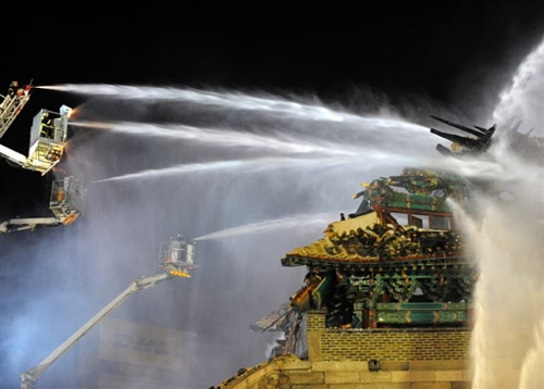 2月10日晚上,韓國第一號國寶“崇禮門”遭受被推測為人為的放火災難,其1、2樓閣全部燒毀導致木制框架整體塌落;馂陌l生后,警方抓捕了一名與目擊者的供詞相符的50多歲男子進行調查,但沒有發現可疑之處,因此將其釋放。警方正在通過崇禮門附近大廈的監控錄像和目擊者,尋找火災發生當時出入崇禮門的人。