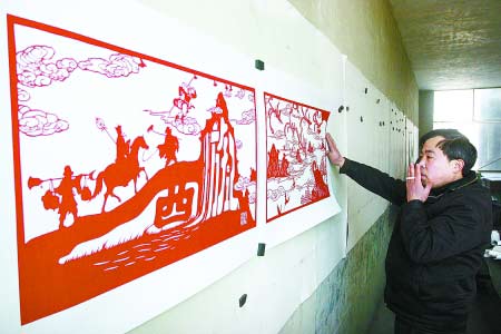 家住鄭州市高新區(qū)石佛村的作者黃軍介紹說(shuō),該連環(huán)畫(huà)從2003年開(kāi)始起稿,近日基本完工。僅起稿就花費(fèi)近1年半時(shí)間,他截取《西游記》原著中各章回中故事情節(jié),如猴王出海學(xué)藝、大鬧天宮等,其中以膾炙人口的經(jīng)典故事為重點(diǎn)。后用鉛筆在佛山紅紙上勾勒故事情節(jié)中人物、花草、山川形象。起稿基本完成。然后按照輪廓線用刻刀刻出,再把刻出的畫(huà)粘貼在長(zhǎng)約1米、寬約0.6米的白色硬紙上。這樣一幅一幅畫(huà)先后做出,拼在一起共有210幅。黃軍說(shuō),他還打算給每幅畫(huà)配上詩(shī)句。