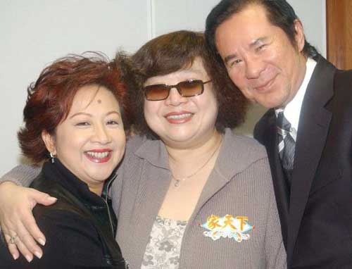 2003年,香港藝員沈殿霞三月五日接受香港新城電臺“家天下”訪問。圖為沈殿霞與主持人薛家燕(左)、該臺總監(jiān)甘國亮(右)興高采烈一起拍照。中新社發(fā) 錢興強 攝