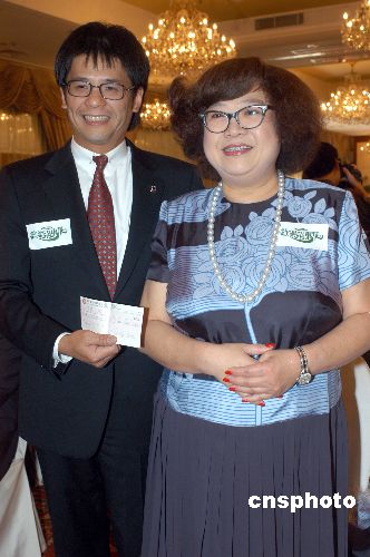 2005年,“肥姐”沈殿霞代表朋友將一張二十萬元支票向東華三院捐贈(zèng),東華三院主席王定一親手接收。中新社發(fā) 鄧慶樂 攝