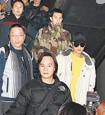 謝霆鋒(右)昨在多位保全與助理護航下抵港。