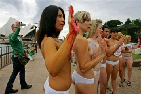 美女裸體抗議斗牛比賽殘忍引發廣泛關注(組圖)(2)