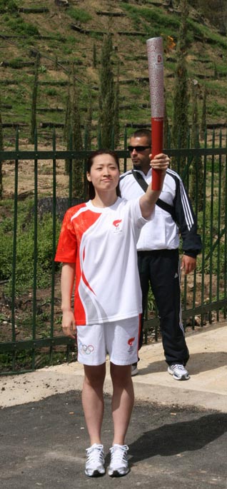第一位中國火炬手羅雪娟。中希時報 汪鵬攝