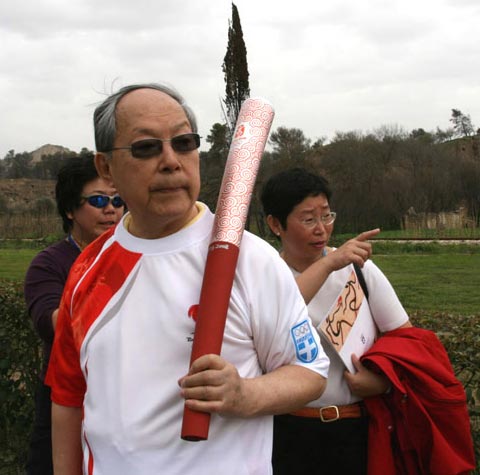 北京奧運圣火傳遞第十五棒中國工程院院士劉鴻亮。中希時報 汪鵬攝