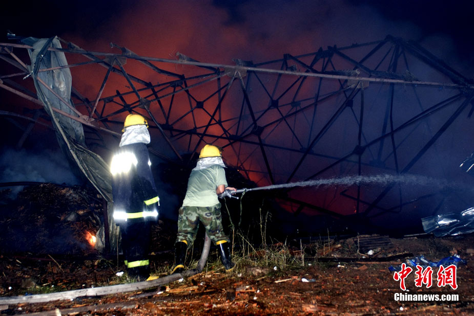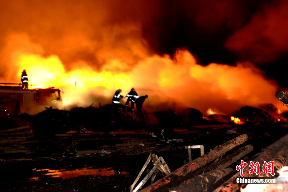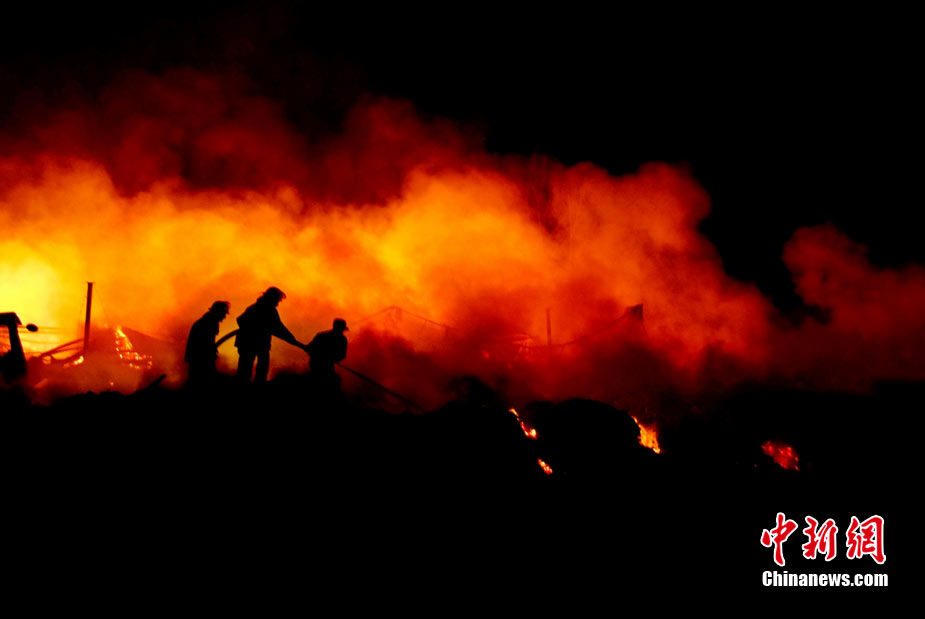 2010年8月16日9時40分左右,黑龍江省伊春市烏馬河區華利實業有限公司鞭炮廠發生持續爆炸。爆炸發生后,伊春市委、市政府緊急啟動爆炸事件、醫療救護應急處置預案,緊急調派公安、消防、醫療救護、武警部隊、駐軍部隊2000余人及時進行搶救,經過8個多小時的奮力鏖戰,因爆炸引起的火災已全部撲滅。截至17日零時,發生在當地烏馬河區的鞭炮廠爆炸已造成19人死亡,5人失蹤,住院傷者153人。準確原因正在進一步調查之中。圖為16日夜23時30分,武警消防部隊官兵不辭辛苦仍戰斗在火場一線清理殘火。陳剛 攝