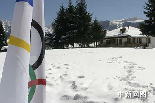 3月26日,北京奧運會圣火希臘境內傳遞第三日,抵達冰雪覆蓋的山城邁措翁。這里是希臘著名的滑雪圣地之一。中新社記者 王歡