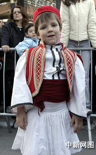 3月26日,北京奧運會圣火希臘境內傳遞第三日,抵達當天最后一個城市韋里亞。當地市民盛裝參加慶典儀式。中新社記者 王歡